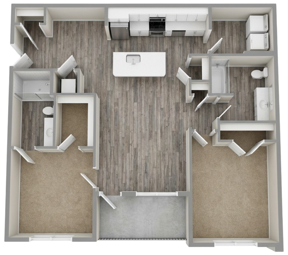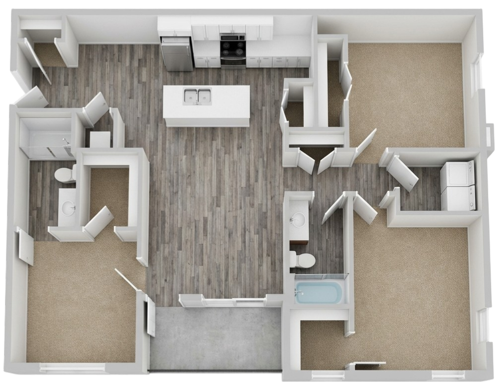 All 3 apartment sizes have their own washer and dryer units included.